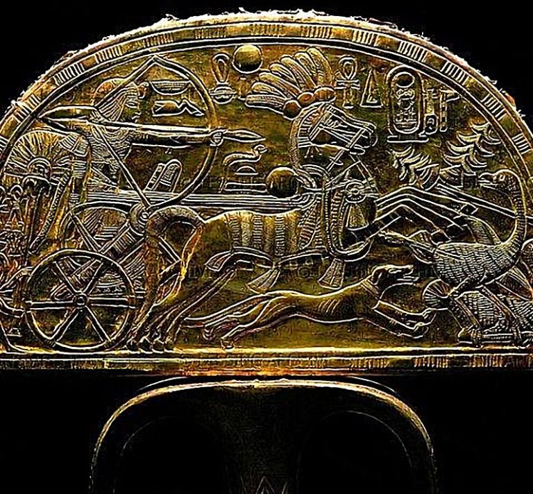 Specificamente riguardo al ventaglio di Tutankhamon, le fonti lo citano come una delle importanti rappresentazioni dello Sloughi nell'arte egizia antica. Sul ventaglio è raffigurata una scena di caccia allo struzzo. Questo manufatto, risalente a circa 3350 anni fa (periodo del Nuovo Regno, XVIII dinastia), è una testimonianza visiva diretta dell'uso di levrieri, in questo caso identificati come Sloughi, nelle cacce reali. I faraoni del Nuovo Regno erano noti per le loro abilità venatorie e l'impiego di branchi di cani snelli e agili per la caccia nel deserto. La scena sul ventaglio conferma il ruolo pratico e il valore di questi cani cacciatori nell'ambito della corte faraonica.